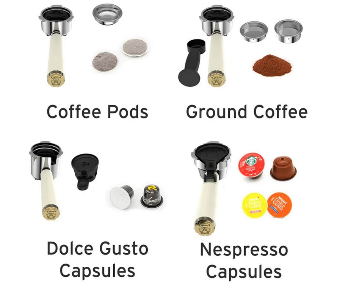 • Фильтры: Долговечные портфильтры из нержавеющей стали для одной или двух порций