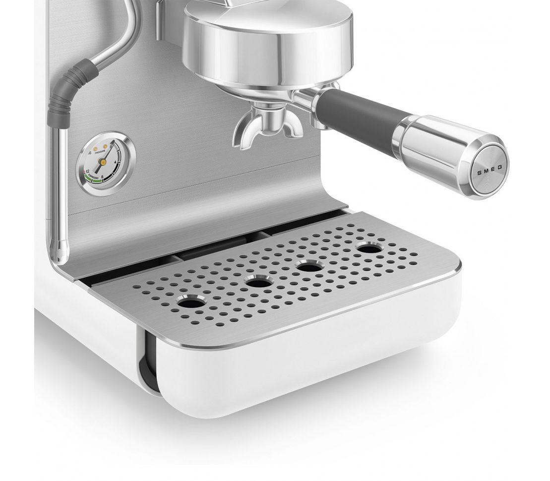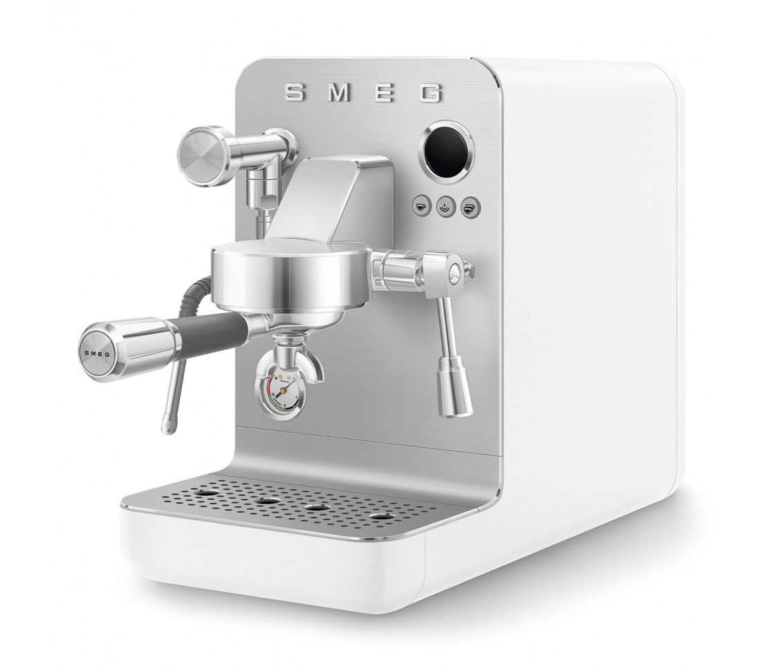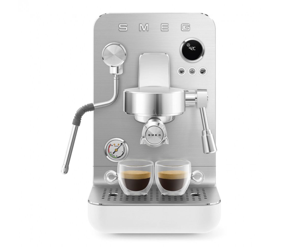 Рожковая эспрессо-кофемашина SMEG EMC02WHMEU подчеркнёт индивидуальность интерьера и станет настоящим украшением Вашей кухни в квартире или загородном доме. Предназначена для приготовления эспрессо и других кофейных напитков. Корпус изготовлен из нержавеющей стали и пластика, капучинатор – из стали, держатель для чашек – из алюминия, основание – пластик.