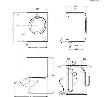 59.7 х 84.7 х 57.6 см Глубина с учетом выступающих элементов 59.9 см