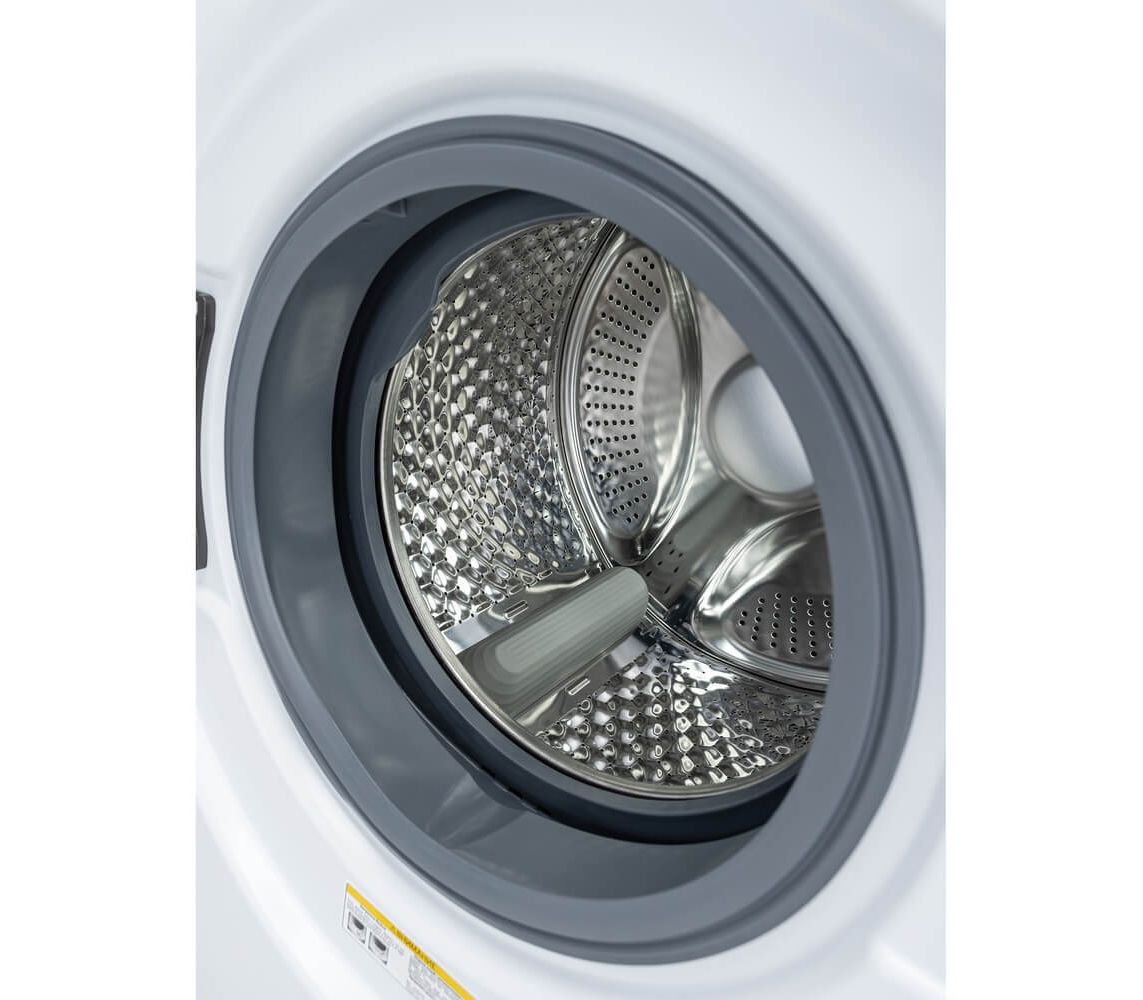 Стиральная машина белого цвета с максимальной загрузкой 10 кг и скоростью отжима 1400 об/мин обладает стильным лаконичным дизайном и большой вместительностью.