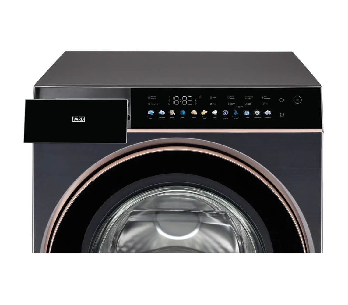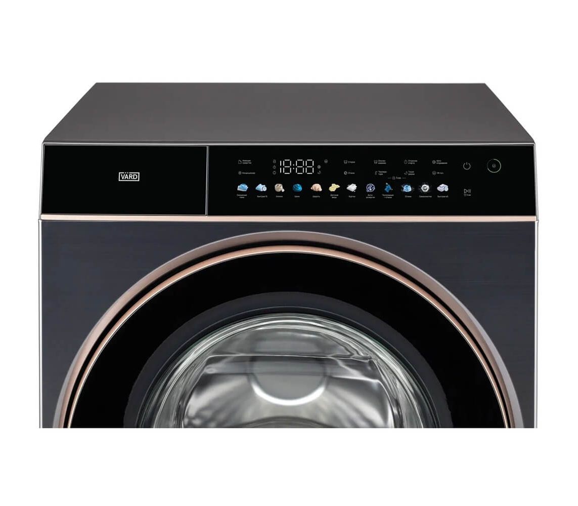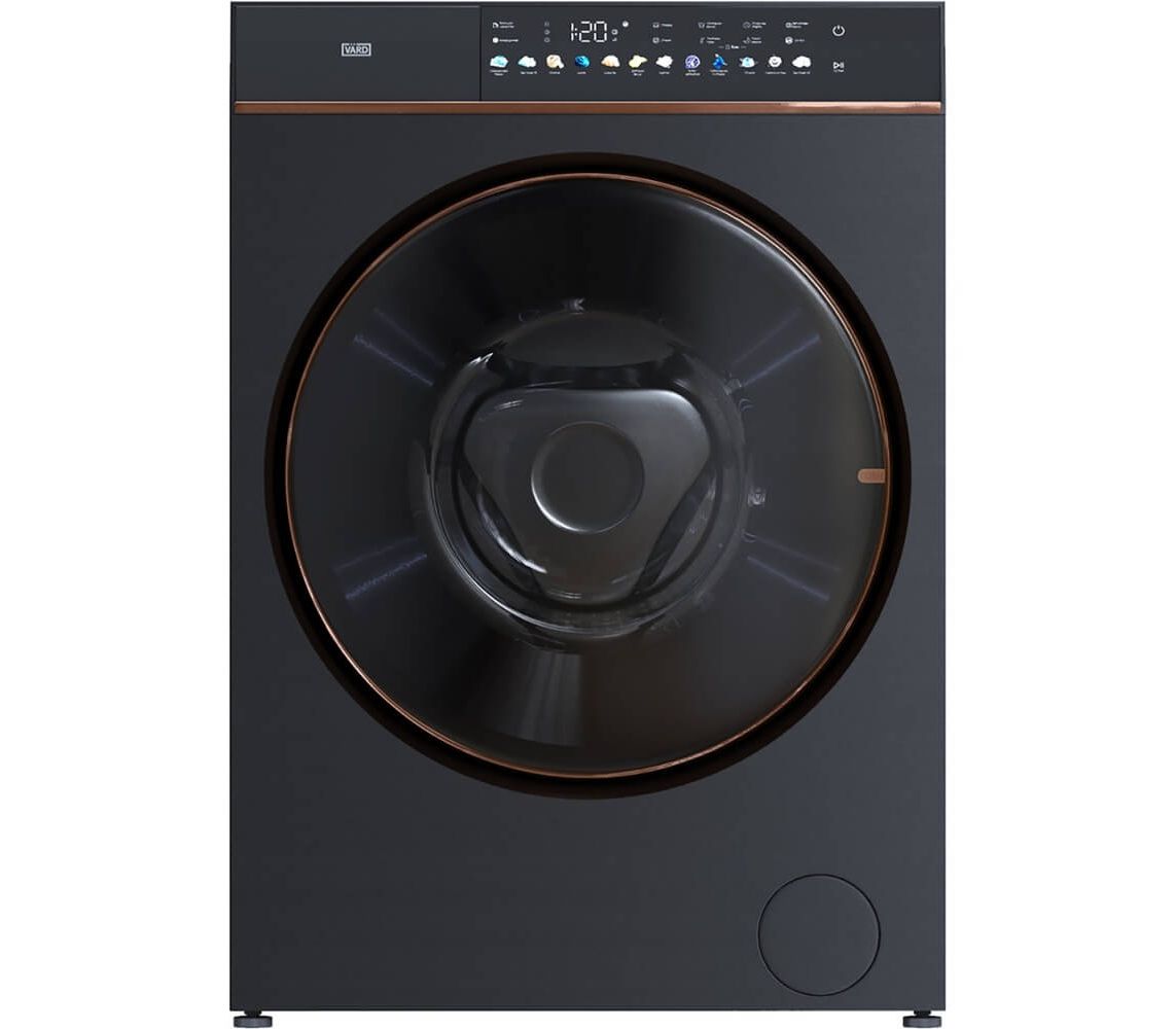 Стиральная машина серого цвета с эксклюзивной медной отделкой обладает максимальной загрузкой 10 кг и скоростью отжима 1400 об/мин и сочетает в себе стильный лаконичный дизайн и большую вместительность.