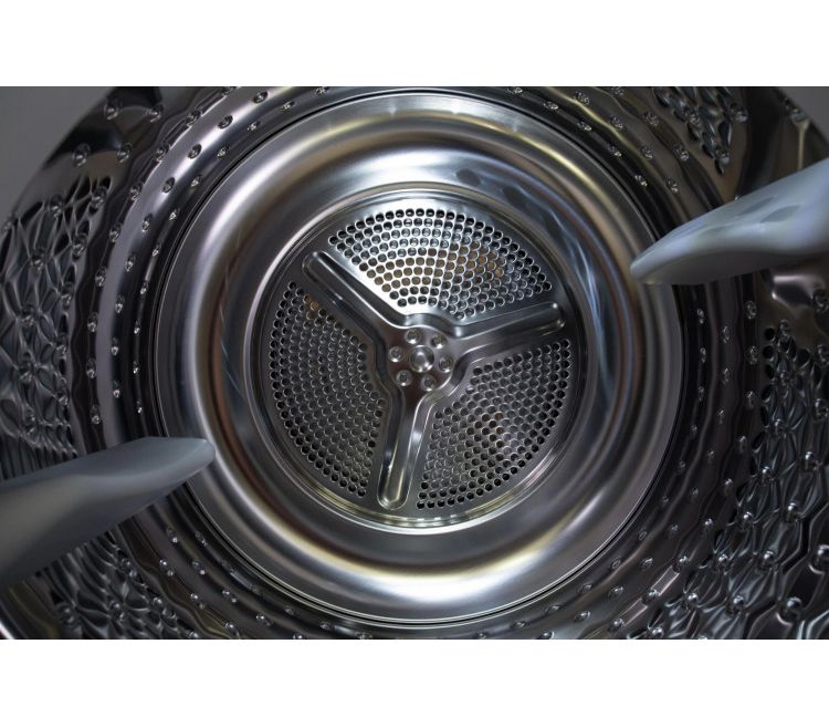 Тип сушки белья в данной модели — тепловой насос. Благодаря этому воздух поступает в барабан уже теплым, что ускоряет работу.