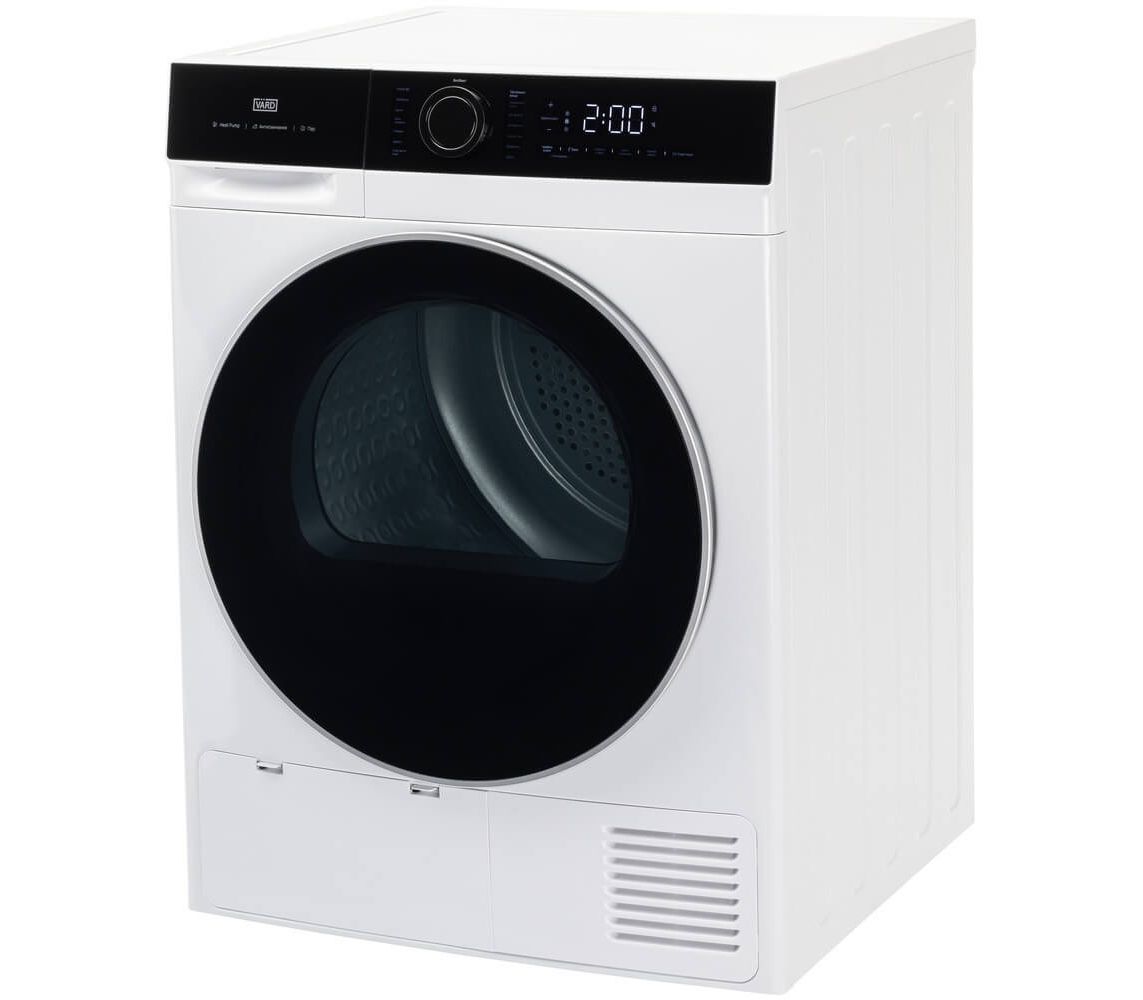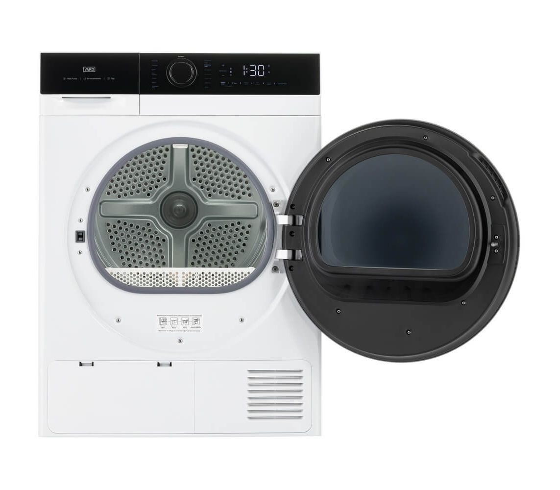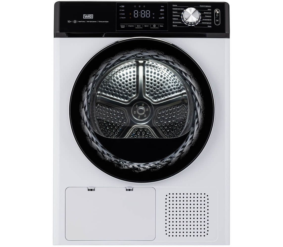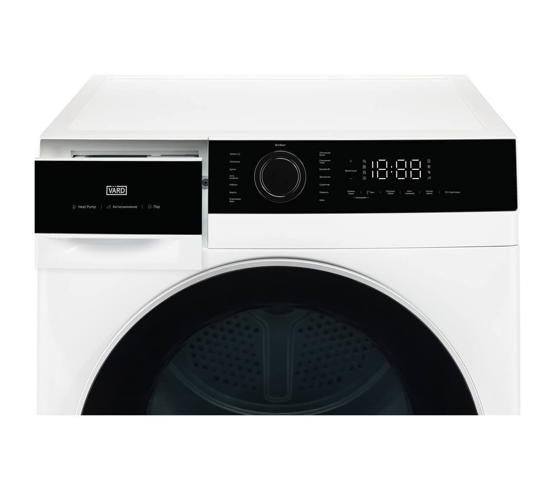 Сушильная машина белого цвета с максимальной загрузкой 10 кг и технологией сушки Heat pump сочетает в себе лаконичный дизайн и передовые технологии.