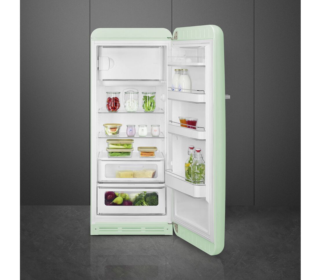 Отдельностоящий однодверный холодильник, стиль 50-х годов, 60 см, Пастельный зеленый, петли справа, Класс энергоэффективности D