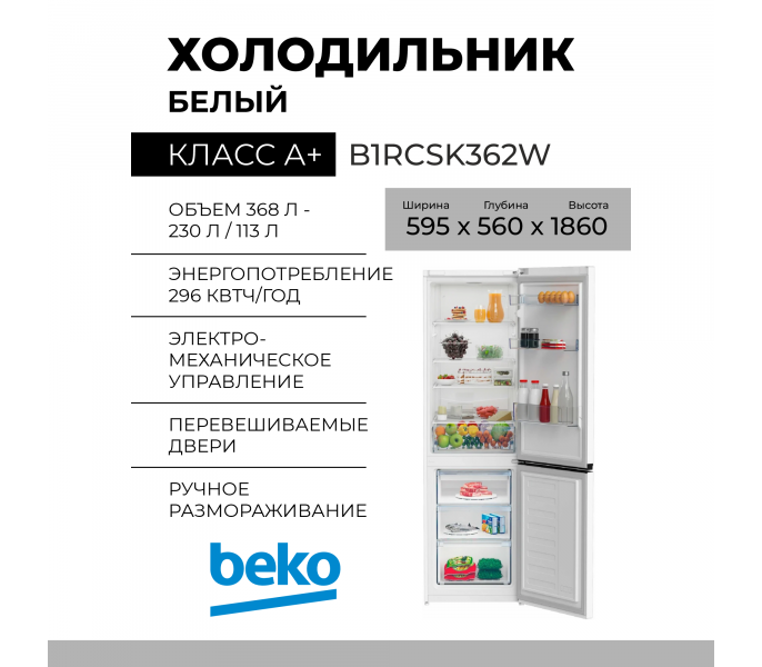 Холодильник Beko B1RCSK362W, без No Frost, A+