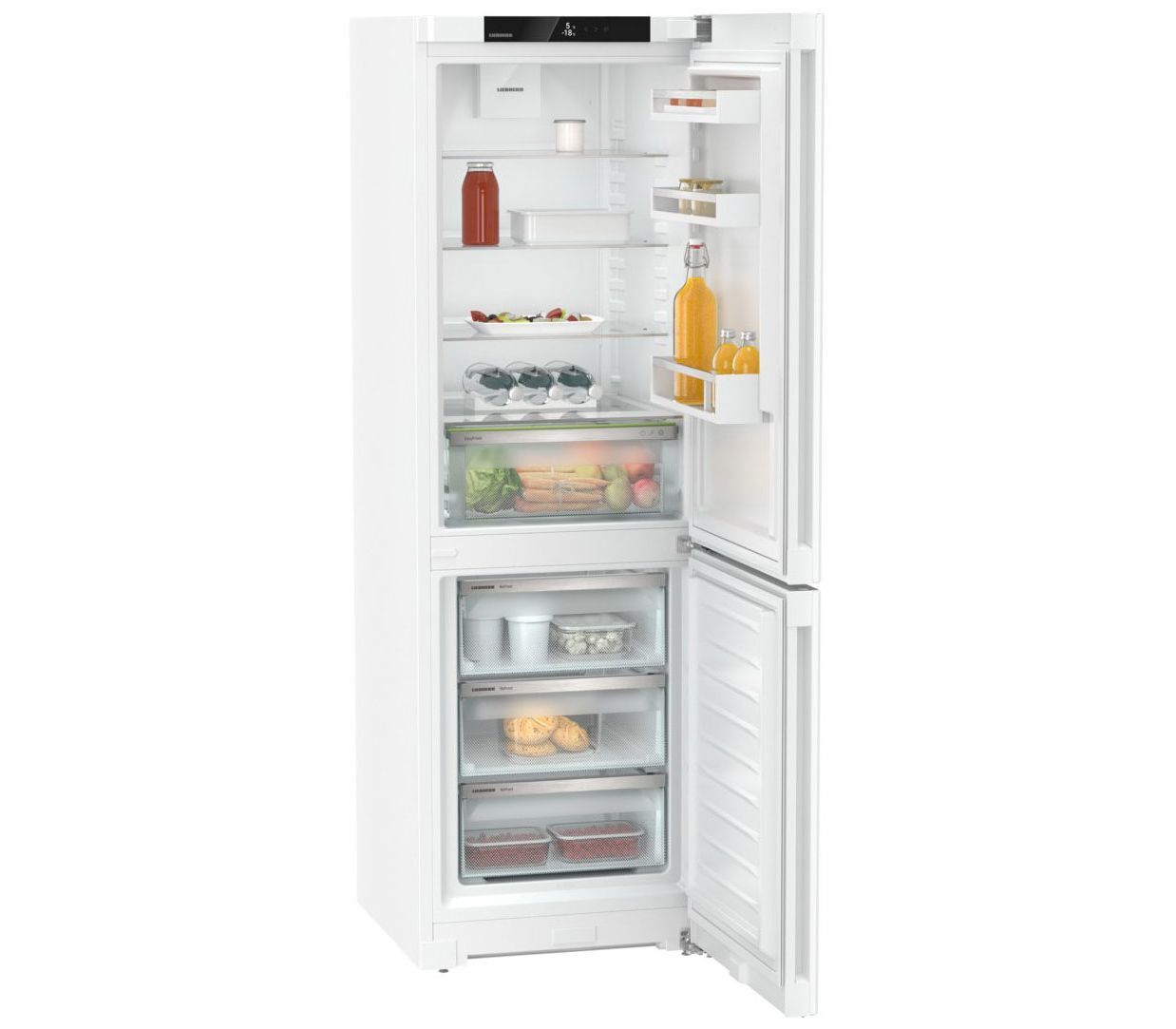 Используйте всё пространство Вашего Liebherr в соответствии с Вашими потребностями! В этом Вам помогут регулируемые по высоте полки на двери: это позволяет быстро и легко изменять высоту полок в любое время и гибко использовать их для надёжного хранения бутылок и различных продуктов.