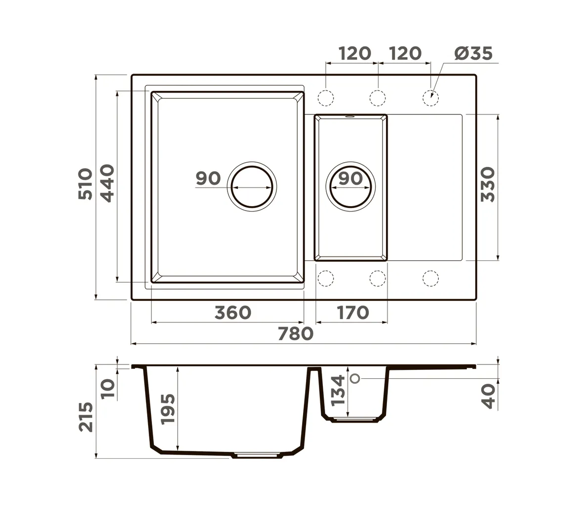 Комплектация: крепления, донный клапан (автоматический донный клапан приобретается отдельно), сифон