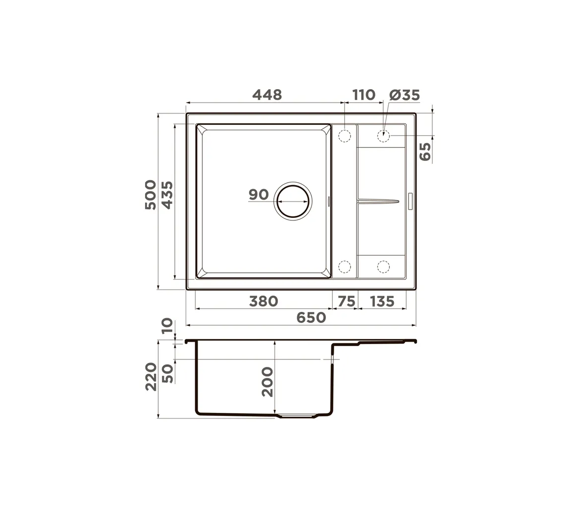 Размер выреза под мойку, мм: 480*630