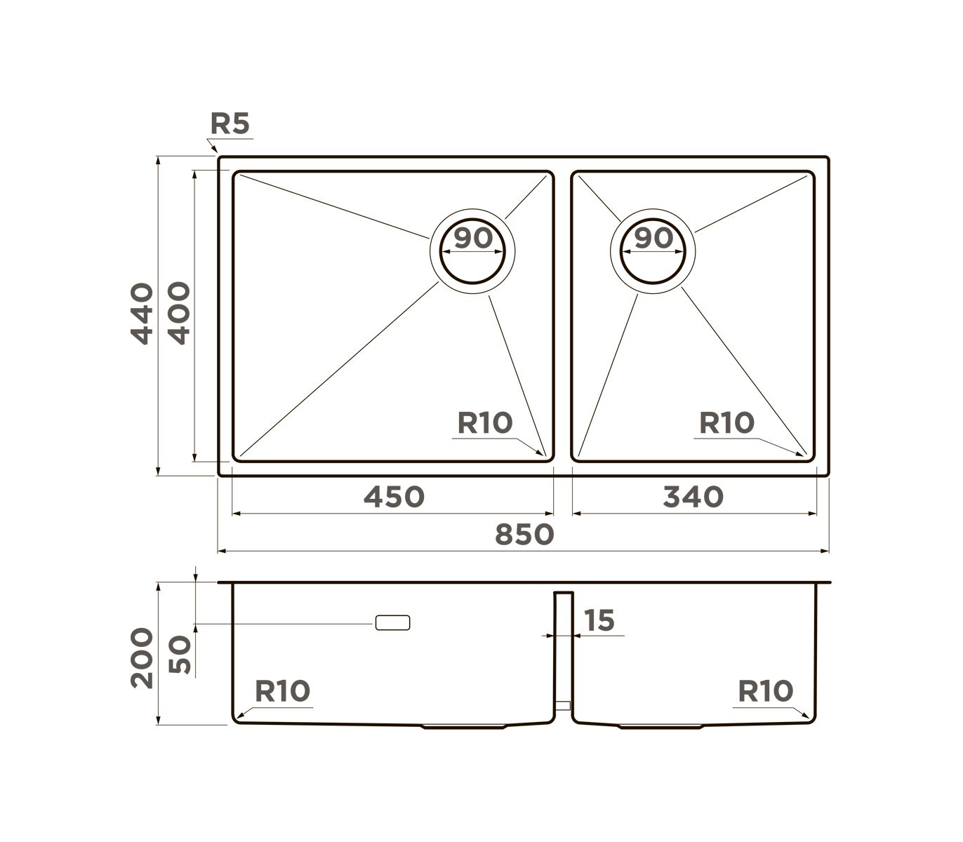 Мойка Omoikiri Taki 85-2-LB-U/IF-GB Side нерж.сталь/графит