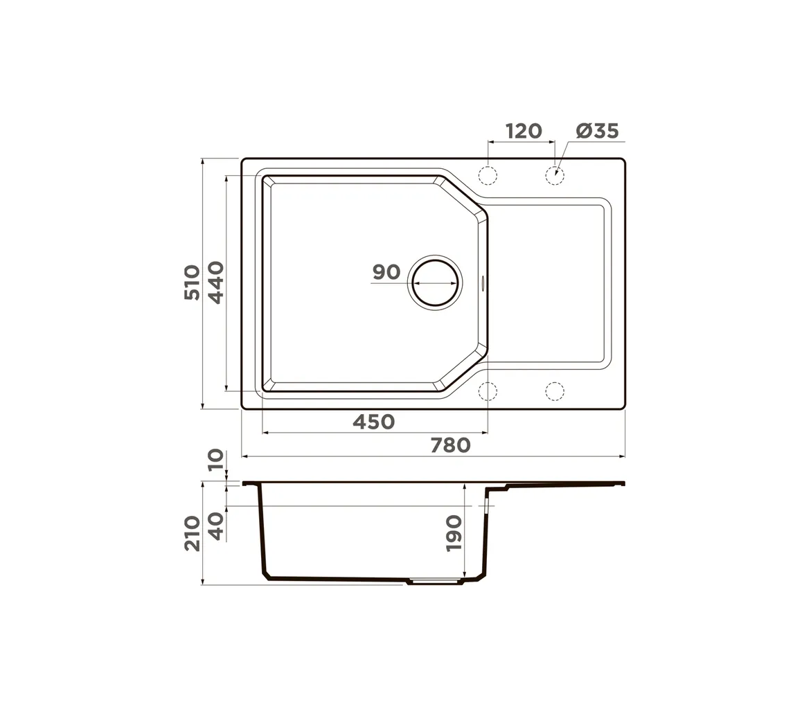 Размер выреза под мойку, мм: 490*760