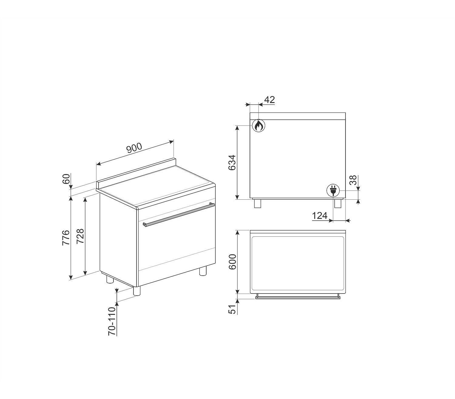 - Крышки горелок: Эмал. матово-черные