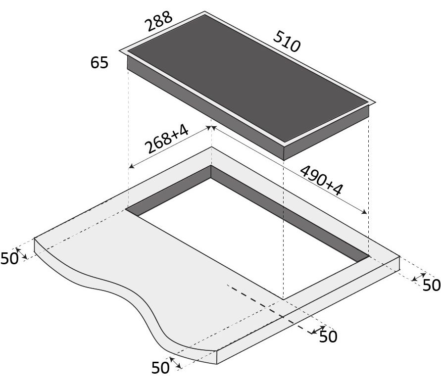 | Размеры ниши для встраивания ВxШxГ (мм) | 268x490 |