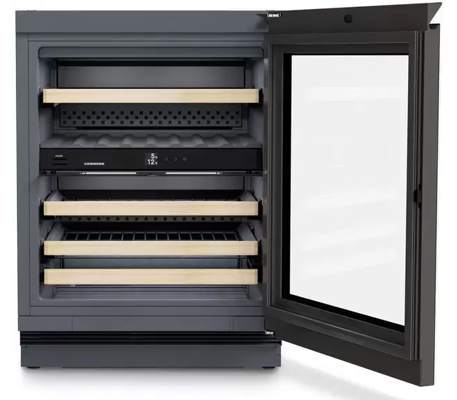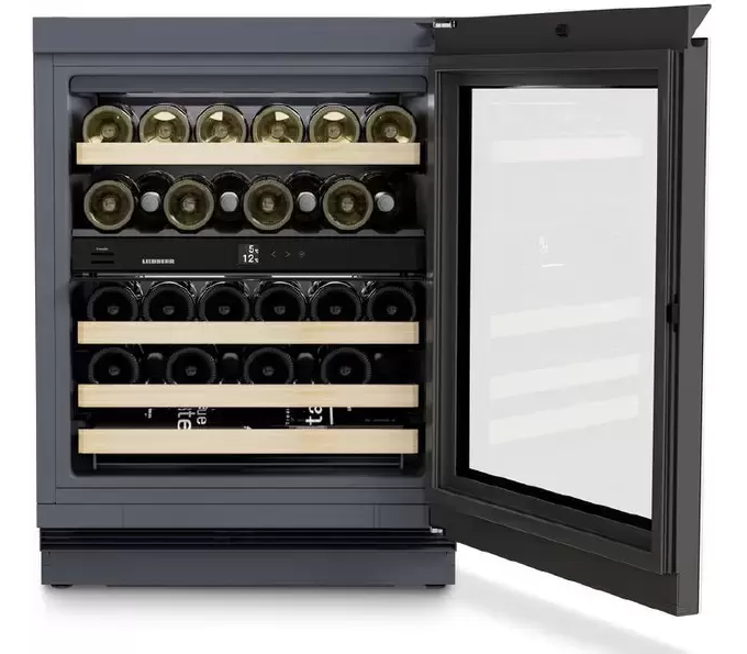 Винный шкаф Liebherr UWGB 3632 Vinidor — элегантное встраиваемое решение для аккуратного и бережного хранения коллекции напитков. Его лаконичный чёрный корпус с тонированным стеклопакетом подчеркивает современный интерьер и легко вписывается под столешницу. Стекло защищает от УФ-излучения, поэтому бутылки сохраняют аромат даже при демонстрационной подсветке. Дизайн сочетает практичность и выставочный эффект, а деревянная окантовка полок добавляет тепла и солидности в общую картину.