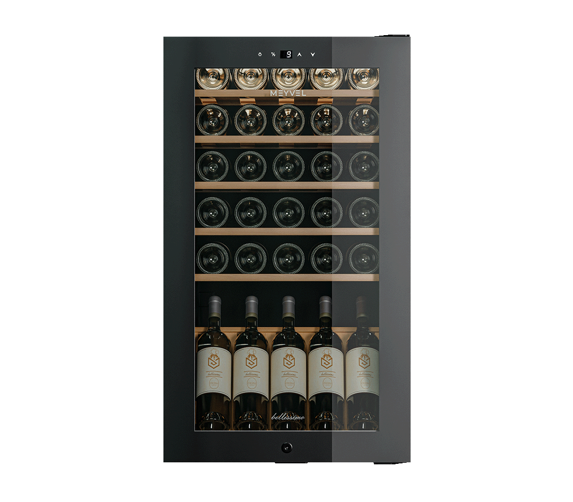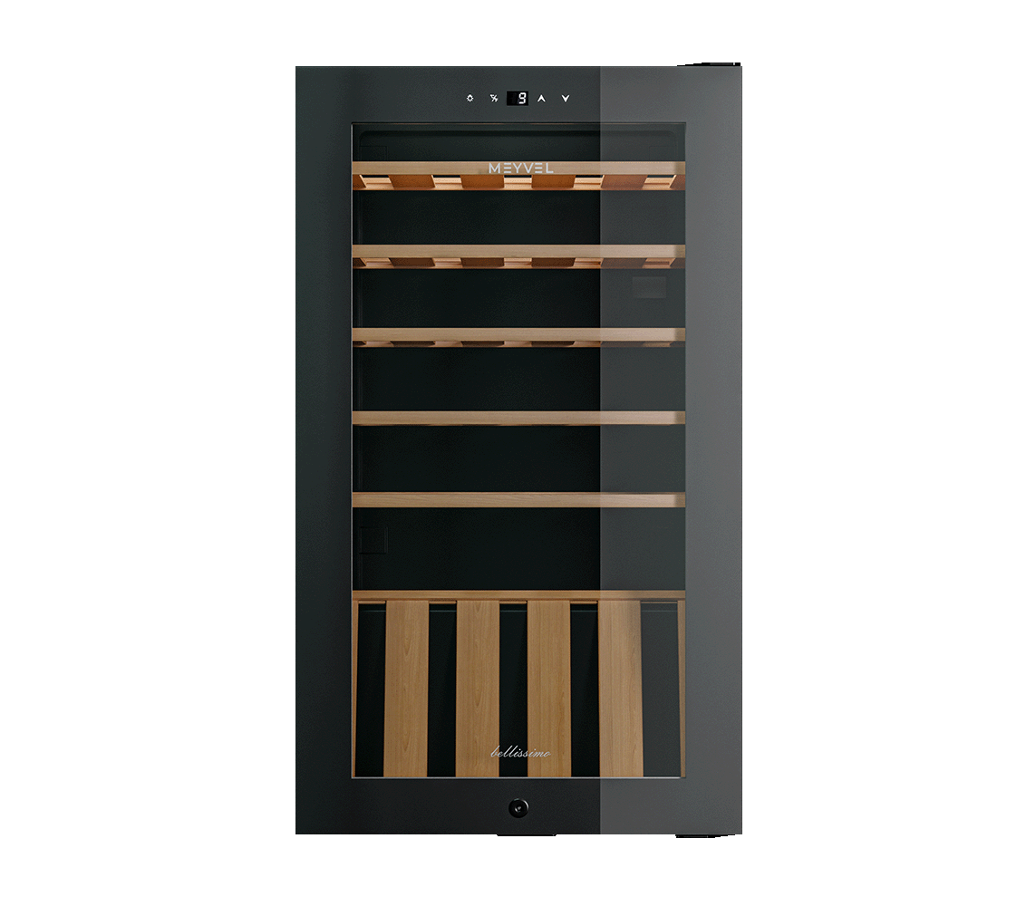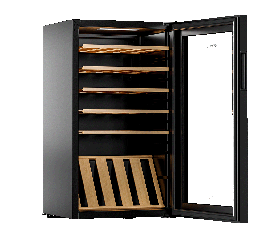 Двойное стекло с УФ-фильтром защищает вино от вредного воздействия ультрафиолетовых лучей, сохраняя его цвет и вкус. Выдвижные полки предоставляют легкий доступ к бутылкам, а демонстрационная полка помогает эффектно представить вашу коллекцию вин гостям.