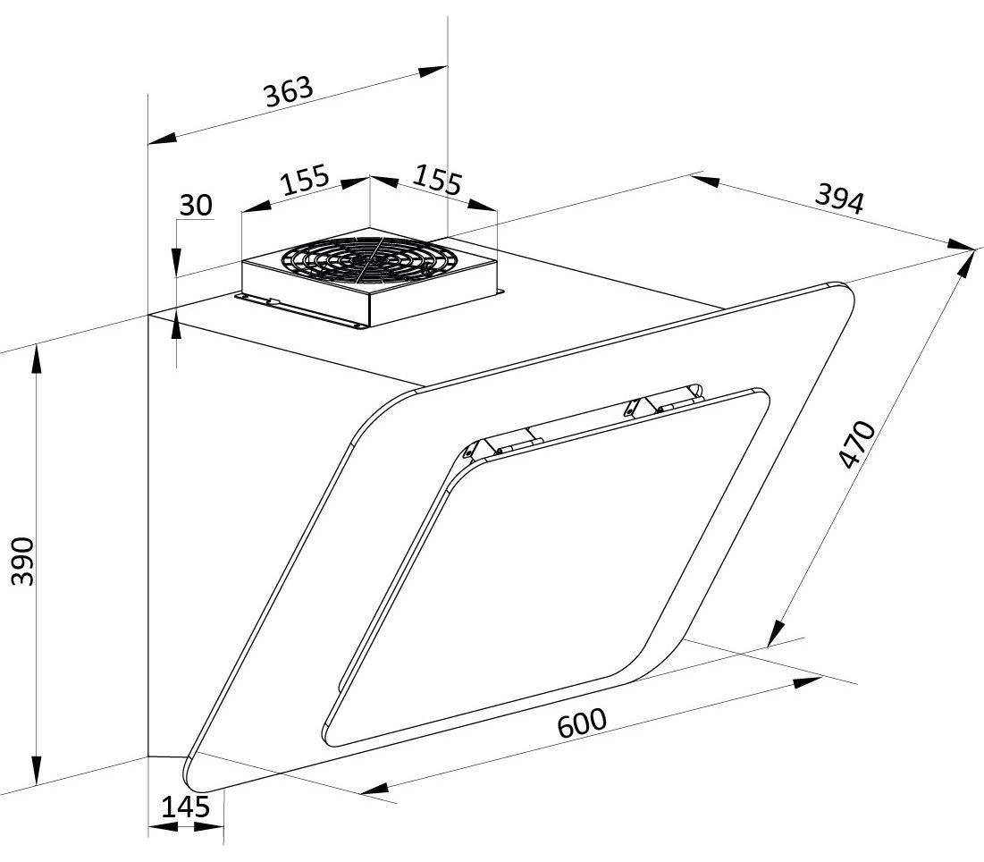 | Размеры прибора без воздуховода ВxШxГ (мм) | 390x600x394 |