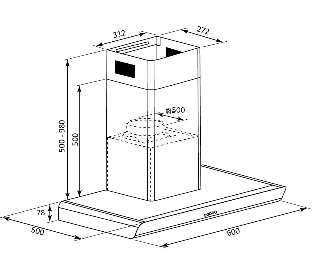 | Мин-Макс высота воздуховода (мм) | 500 / 980 |