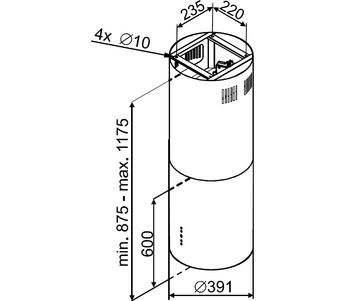 При установке в островной конфигурации эта вытяжка будет прекрасно сочетаться с остальными элементами Вашей кухни.