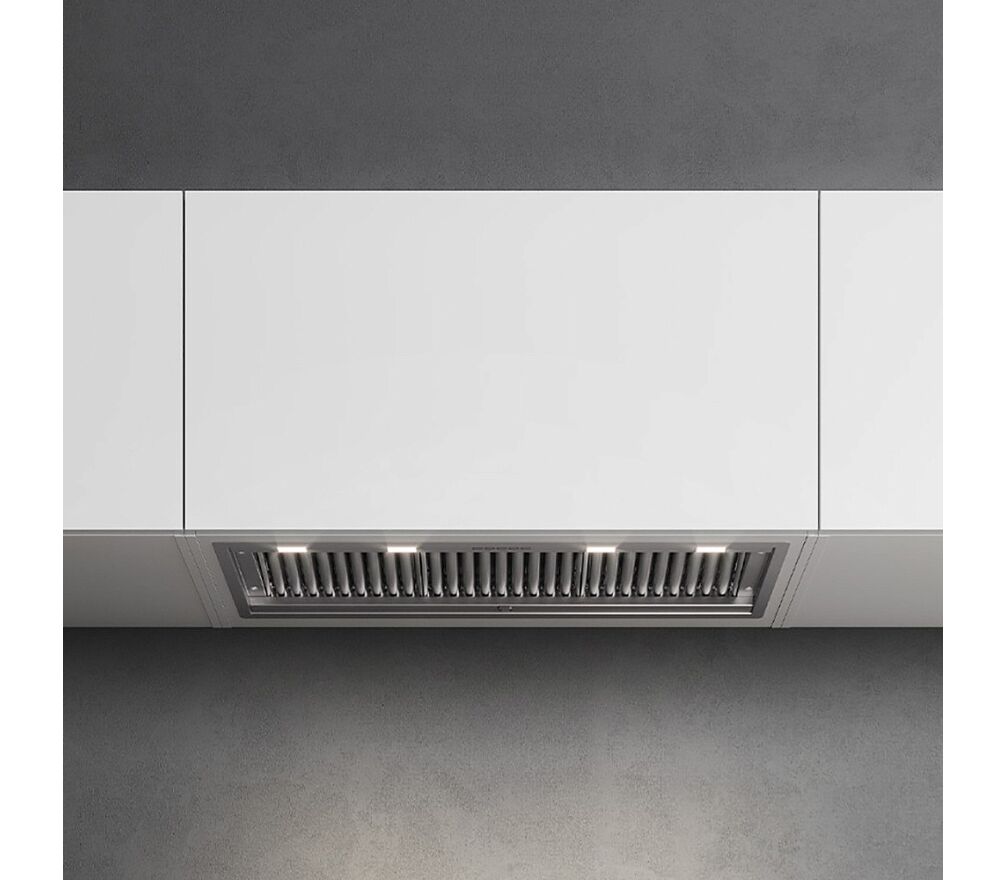 Дизайн. Вытяжка Falmec Gruppo Incasso No-Drop имеет корпус из нержавеющей стали. От моделей предыдущего поколения отличается тем, что корпус полностью примыкает к нижней части шкафа.