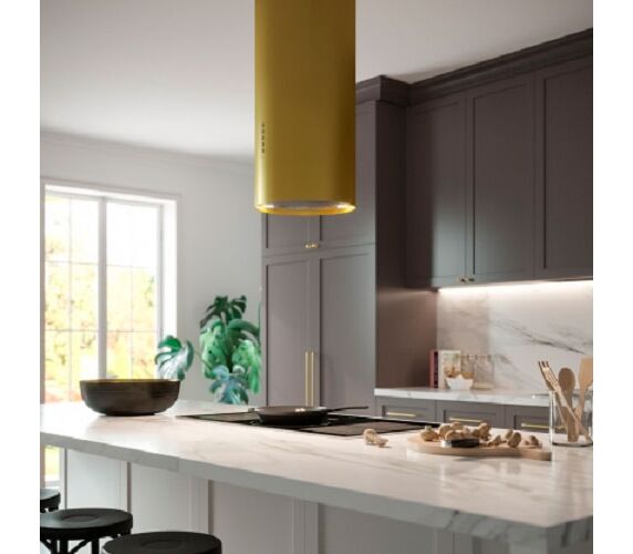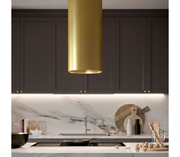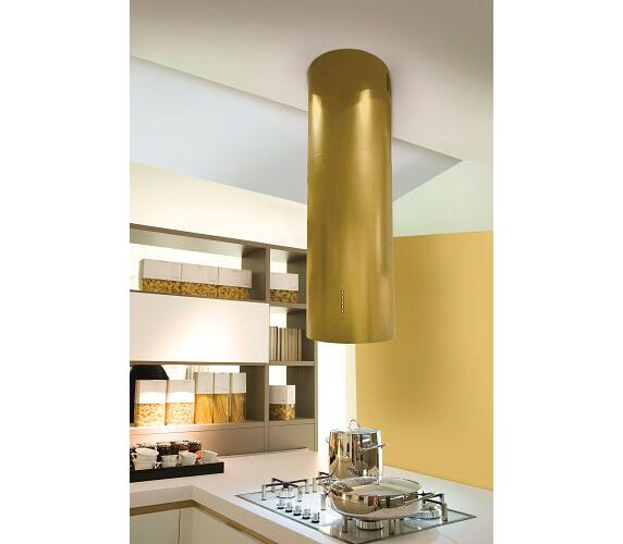 Дизайн: Островная вытяжка Falmec POLAR IS GOLD 35 выполнена в благородном золотом цвете. Данная модель может быть установлена практически в любом месте кухни и прекрасно дополнит интерьер.