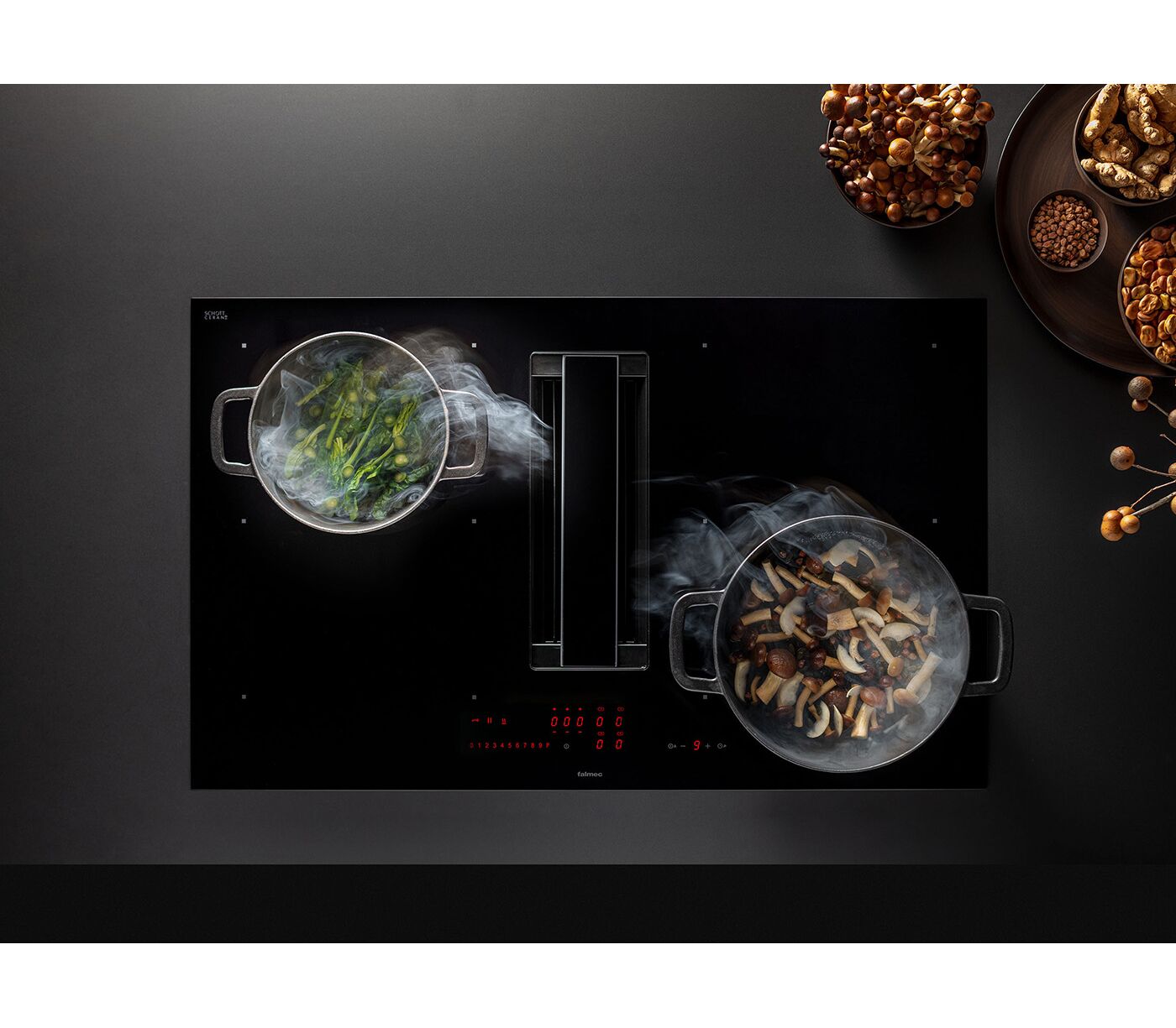 Вытяжка и индукция Falmec ZERO EASY 84 VETRO NERO (вытяжка+индукция) для рециркуляции