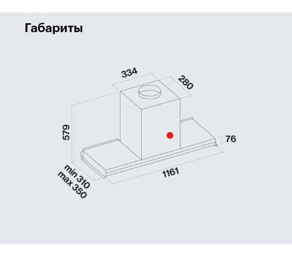 | Мотор и управление | 800 м³/ч (I.E.C.61591) 1280 м³/ч (максимальная производительность) 4 скорости, сенсорный тип управления |