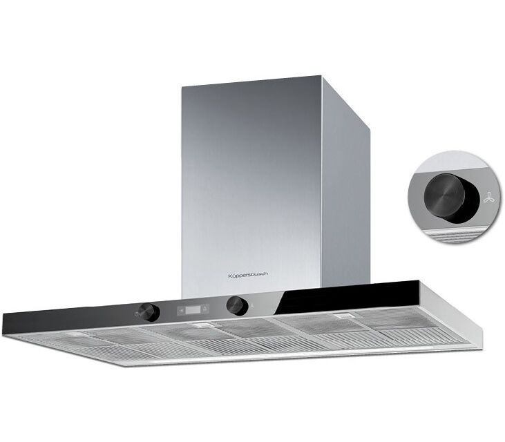 Вытяжка Kuppersbusch DW 9350.0 E — модель каминного типа с настенным креплением и распространенной т-образной конструкцией. Ее можно расположить как между шкафами, так и отдельно от кухонной мебели. Универсальный цвет нержавеющей стали позволяет сочетать устройство с разными стилями интерьера. Для удобного обзора рабочей зоны предусмотрена светодиодная подсветка. Тип управления данной модели — электромеханический. Настройка осуществляется с помощью поворотных переключателей, расположенных на фронтальной поверхности, что обеспечивает удобный доступ к ним. Освоить управление прибором сможет без труда любой пользователь.