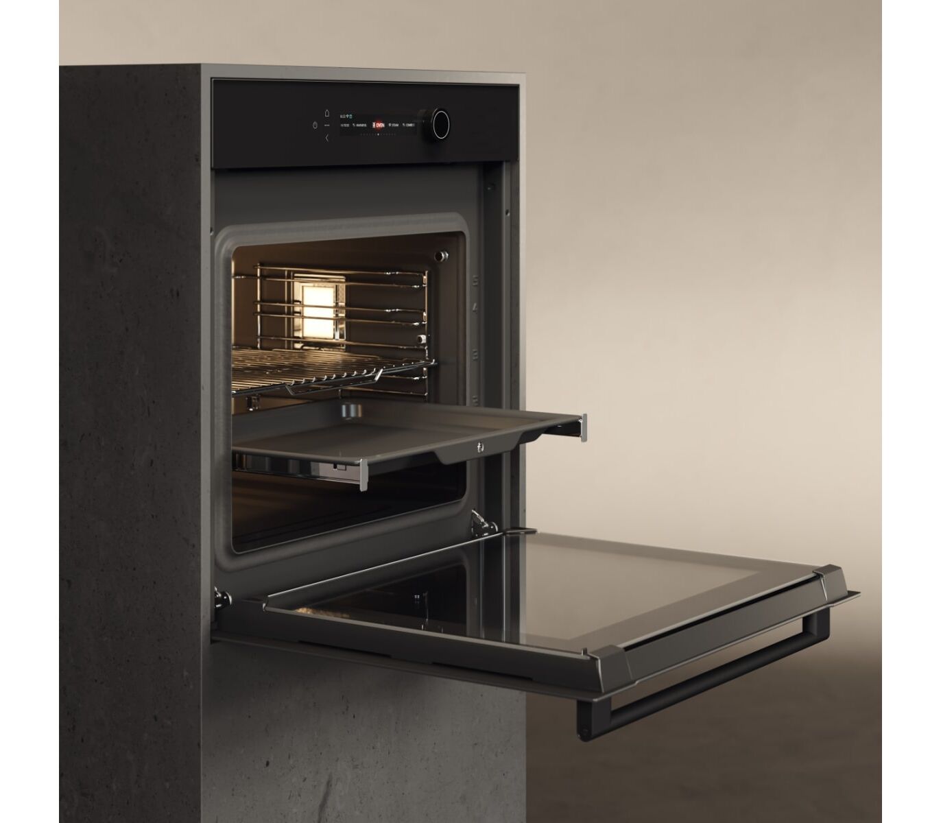 Комплектация: 2 х универсальных противня, 1 х решетка, 1 х термозонд