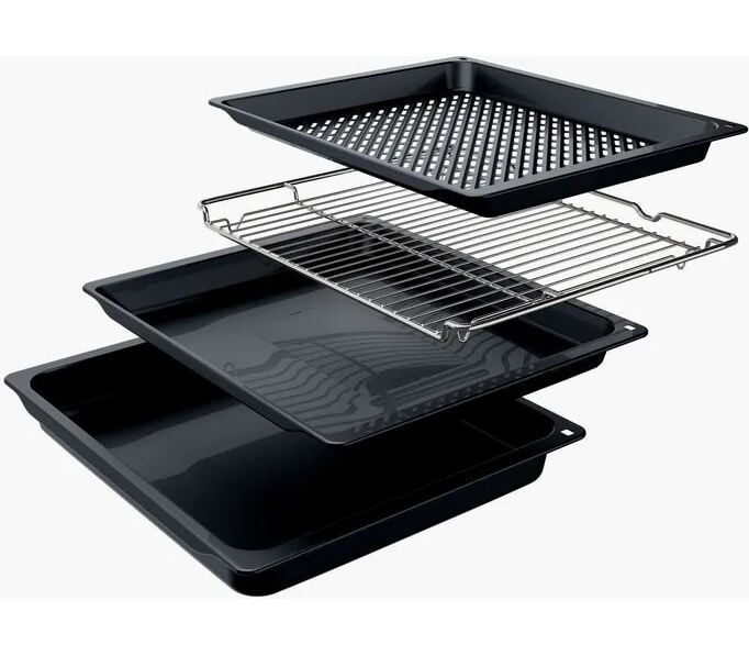 Духовой шкаф оснащен внутренним объемом 76 литров, что позволяет готовить большие порции еды за один раз. Он предлагает восемь режимов нагрева, включая 3D-горячий воздух, горячий воздух Gentle, верхний/нижний жар, большой гриль, режим для пиццы, нижний жар и Air Fry. Диапазон температур от 50 до 275 градусов Цельсия позволяет точно подстроить температурный режим под любой рецепт. Особенностью прибора является наличие 10 автоматических программ и функции CookControl, благодаря которым даже новичок сможет приготовить вкусное и ароматное блюдо. Внутреннее галогенное освещение обеспечивает отличную видимость внутри духового шкафа, а система очистки EcoClean с панелями на верхней стенке, задней и боковых стенках облегчает уход за прибором.