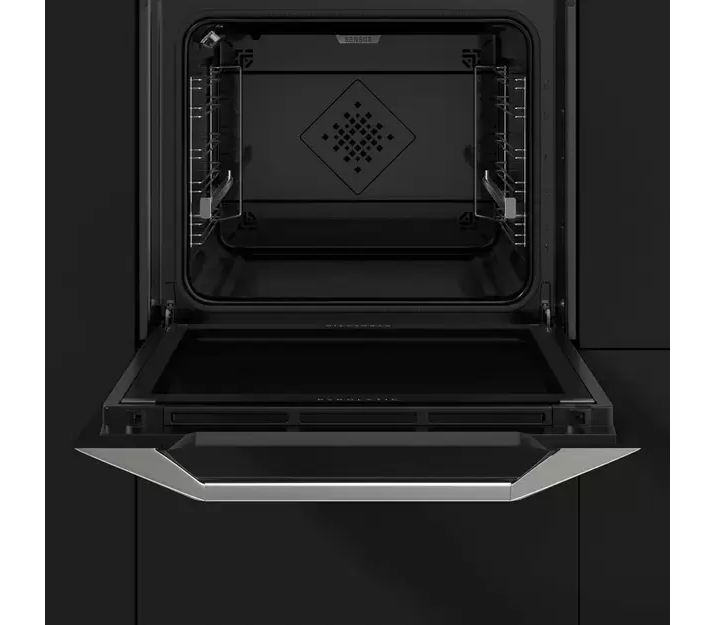 Особенности дизайна и внешней панели управления — также важный пункт при выборе духовки на кухню. В данной модели нужно обратить внимание на цвет — черный, охлаждение двери, чтобы поверхность и мебель вокруг не нагревались.