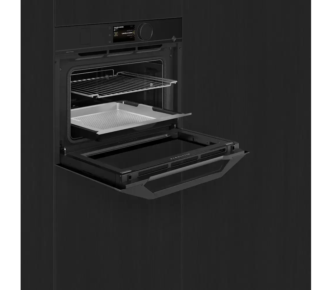 Особенности дизайна и внешней панели управления — также важный пункт при выборе духовки на кухню. В данной модели нужно обратить внимание на цвет — черный, охлаждение двери, чтобы поверхность и мебель вокруг не нагревались.
