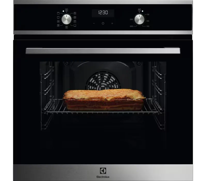Духовой шкаф Electrolux EOF5H50BX открывает новую страничку в дизайне вашей кухни с лаконичным черным фасадом и аккуратной панелью управления. Его строгие линии вписываются в современный интерьер, а сочетание матовой поверхности и стекла создаёт премиальный вид. Встраиваемый формат и компактные габариты 59×59.4×56 см обеспечивают плотную интеграцию в модульную мебель без потери полезного объёма.