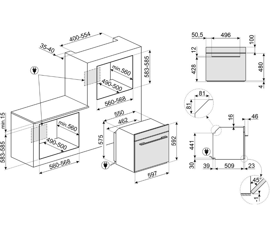 - Габариты ниши для встраивания (ВхШхГ): 583-585х560-568х560 мм