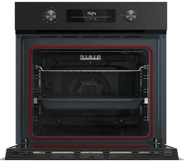 Дизайн подчёркнут минималистичной фасадной поверхностью и продуманной фурнитурой: три слоя стекол в дверце усиливают теплоизоляцию и снижают риск ожога, при этом стекло легко снимается для удобной чистки. Внутреннее освещение реализовано лампой накаливания мощностью 25 Вт, равномерно подсвечивающей камеру. Для облегчения ухода предусмотрена система пиролитической очистки HydroClean ECO, сокращающая трудозатраты на удаление загрязнений и поддержание идеального состояния внутренней поверхности. Корпус и элементы управления выполнены из качественного металла, что повышает износостойкость при активной эксплуатации и подчёркивает премиальный характер исполнения.
