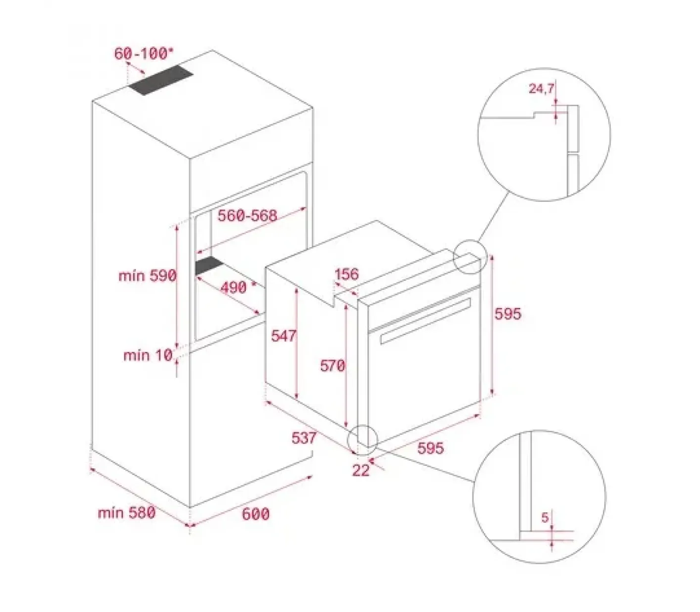 | Габариты встраивания (ВхШхГ) | 590х560-568х540-490 мм |