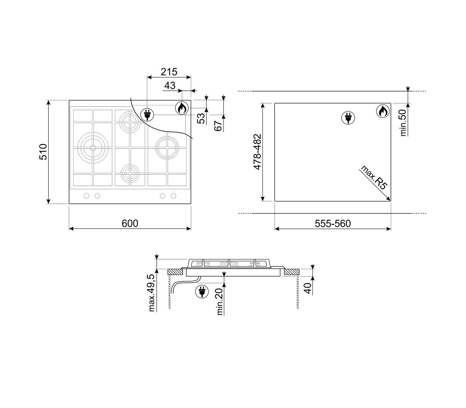 - Размер ниши для встраивания (ШхГ): 555-560х478-482 мм