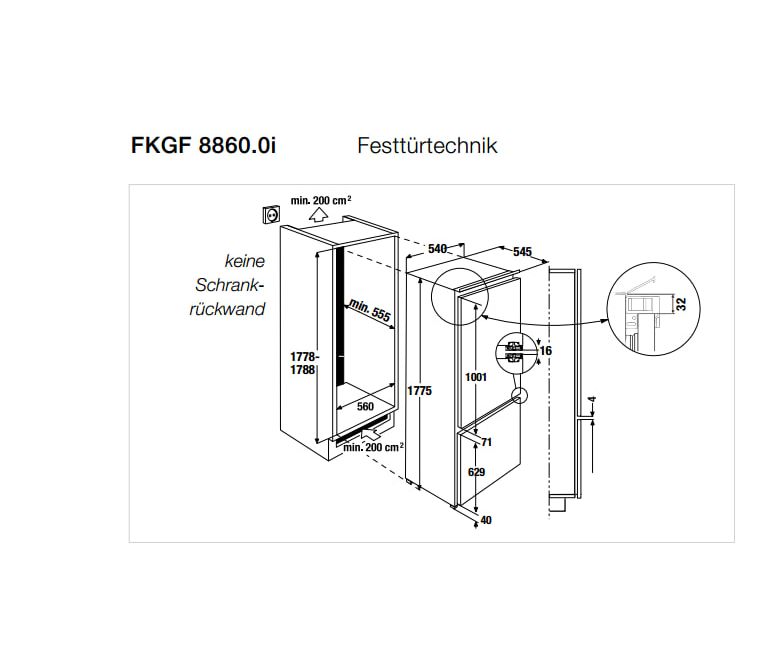 Встраиваемый холодильник с нижней морозильной камерой Kuppersbusch FKGF 8860.0i