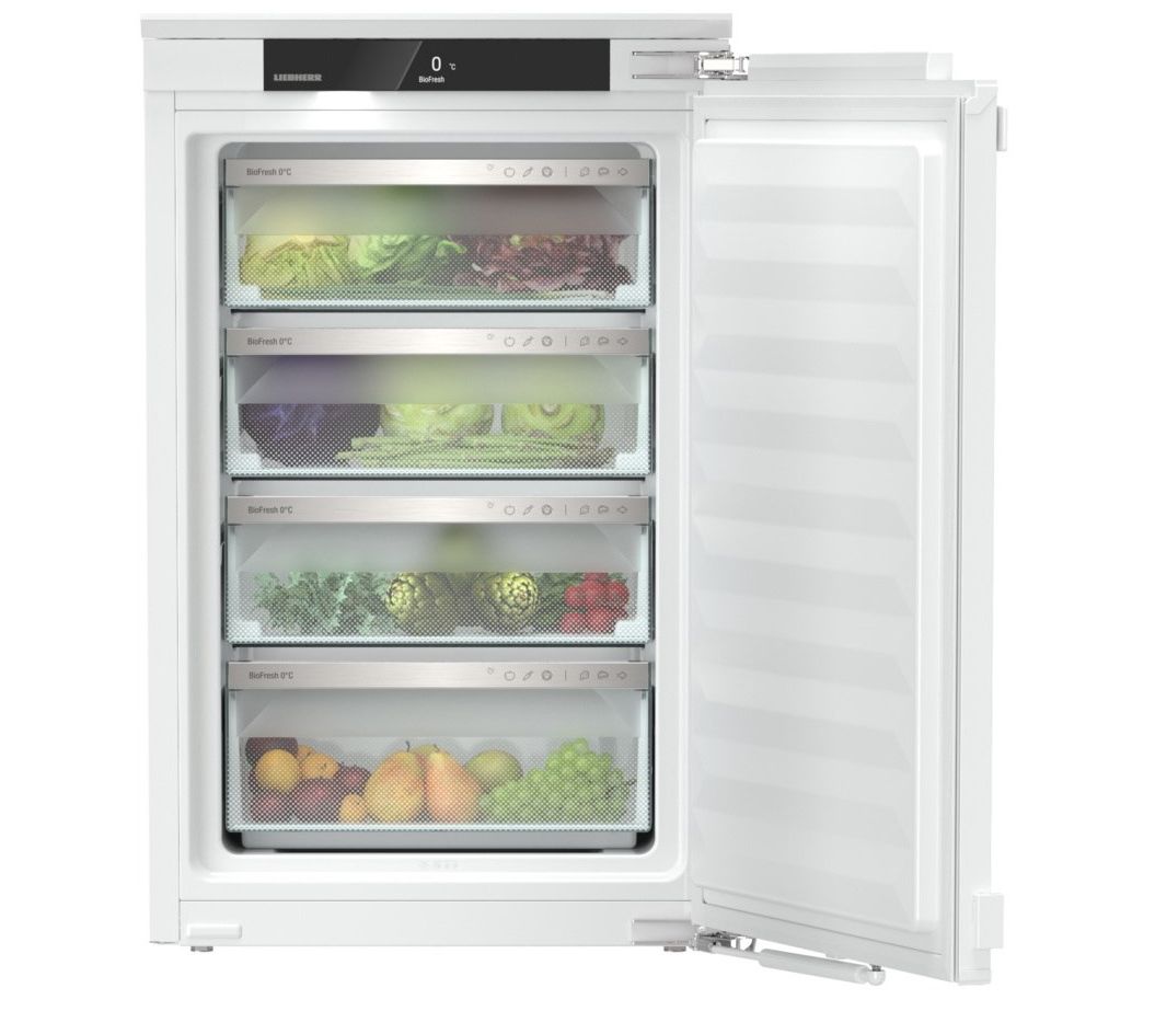 Светодиодное освещение обеспечивает приятный свет в контейнерах BioFresh. Так вам будет ещё проще найти нужные продукты. Энергоэффективный светодиодный блок элегантно и компактно расположен над контейнерами.