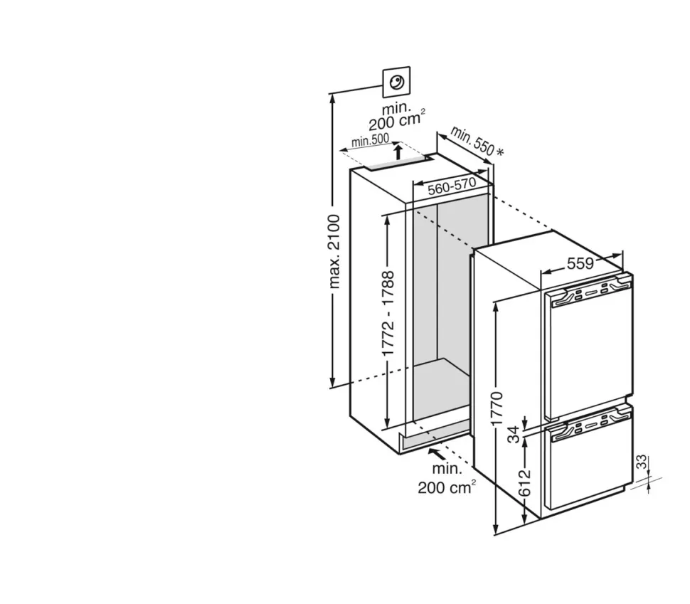встраиваемый двухкамерный холодильник