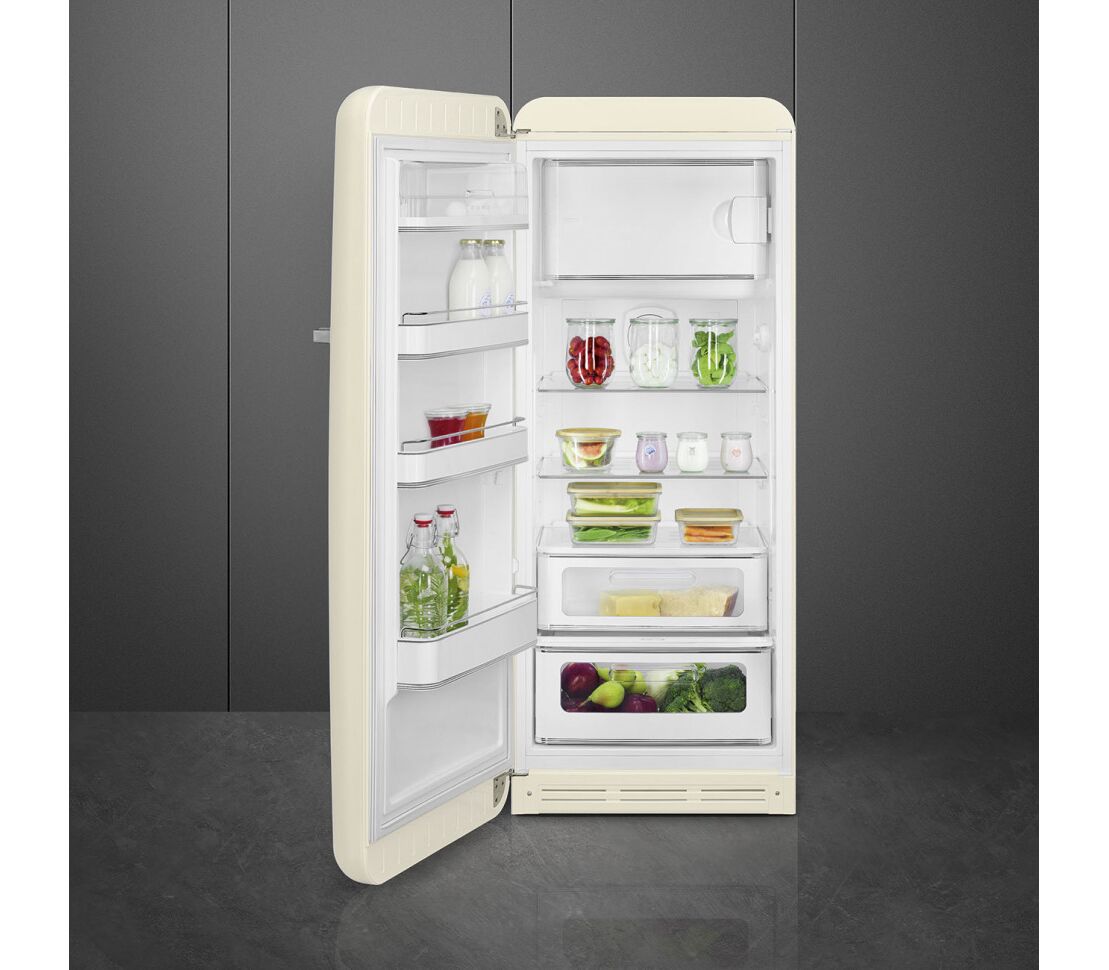 Отдельностоящий однодверный холодильник, стиль 50-х годов, 60 см, Кремовый, петли справа, Класс энергоэффективности D