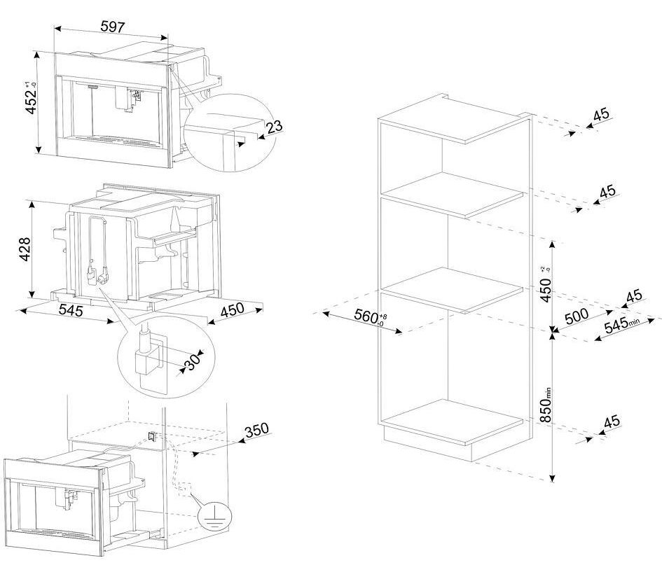 - Размеры ниши для встраивания (ВхШхГ): 450х560х545 мм