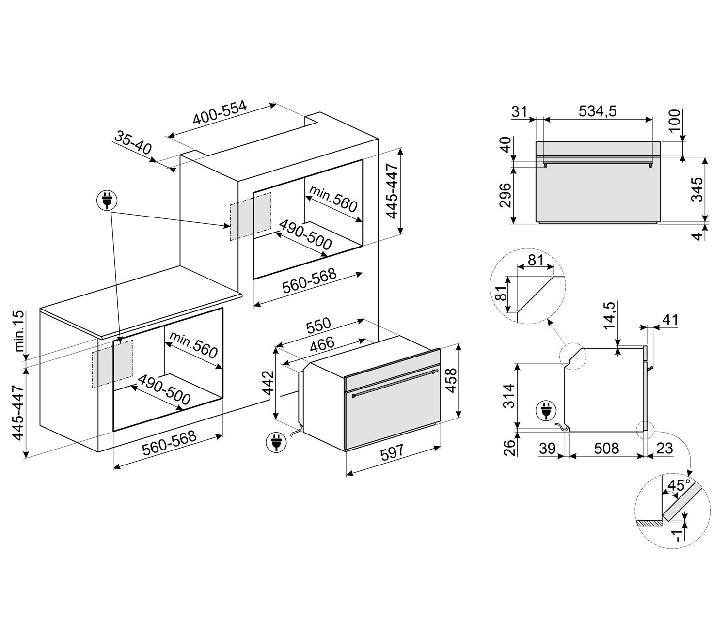 - Размеры ниши для встраивания (ВхШхГ): 445-447х560-568х560 мм