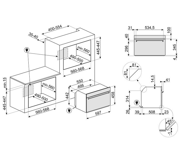 - Размеры ниши для встраивания (ВхШхГ): 445-447х560-568х560 мм