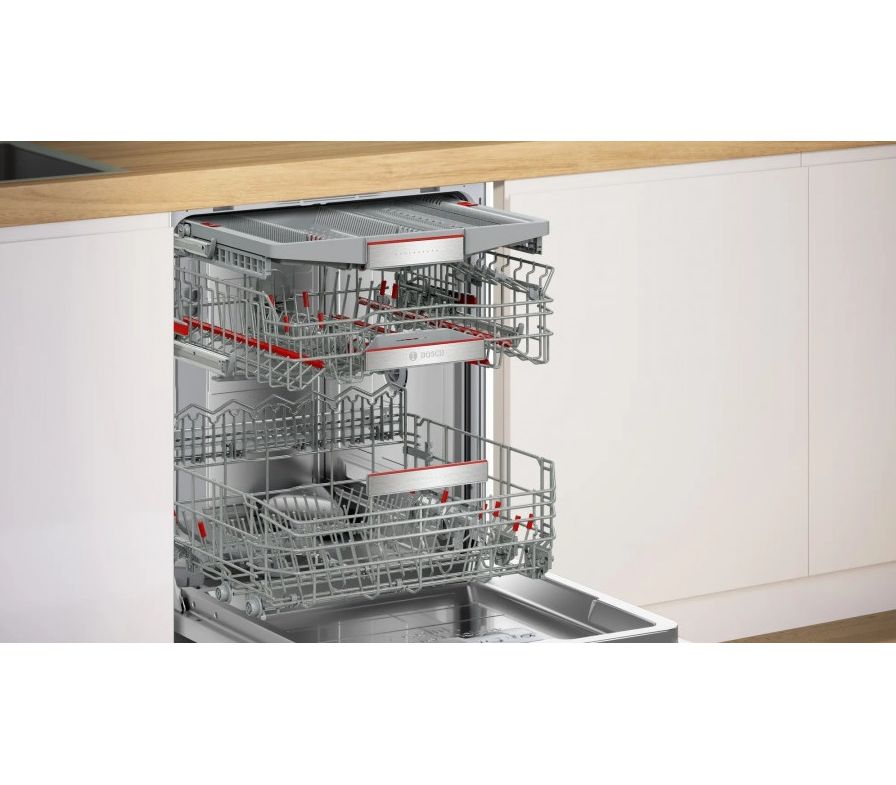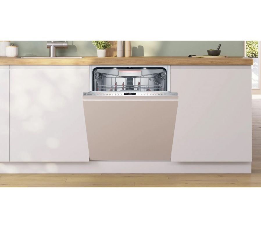 Встраиваемая посудомоечная машина Bosch SMV8YCX02E на 14 комплектов с 3 корзинами. Верхний разбрызгиватель для эффективной мойки при полной загрузке и минералы цеолиты для быстрой сушки и экономии энергии. Проецируемый на пол луч показывает текущий этап и время до конца цикла. Управляется голосом или через мобильное приложение, поддерживает 8 программ мойки и самоочистки, таймер отсрочки. Сенсор чистоты воды определяет степень загрязнения посуды и подбирает оптимальные параметры цикла.