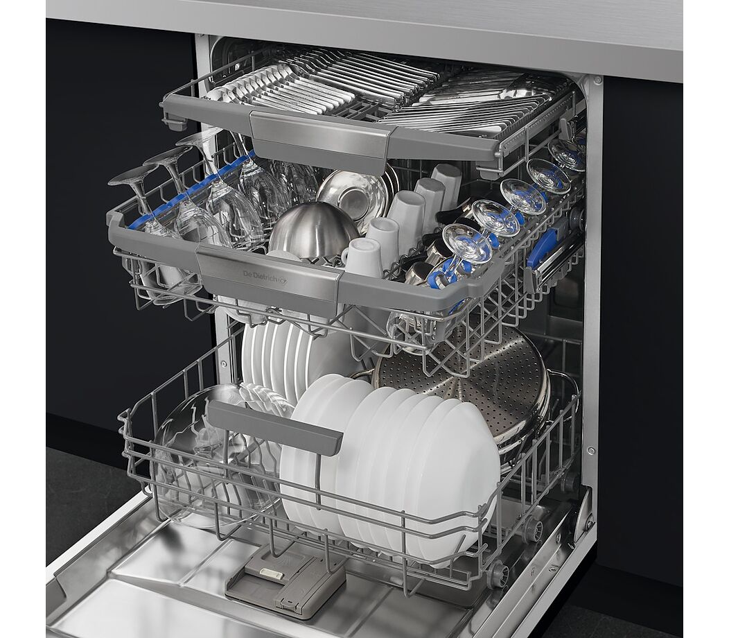 Встраиваемая посудомоечная машина De Dietrich DBJ434DQA предназначена для гигиенической обработки и последующей сушки различной посуды на предприятиях общественного питания, в гостиничных комплексах и домашних условиях. Модель оснащена камерой с откидной дверью с горизонтальной рукояткой, верхним и нижним моечными рукавами, дозаторами моющих и ополаскивающих средств, устройством умягчения воды, кабелем питания с евровилкой (Shuko), расположенной на верхнем торце двери панелью управления с функциональными нажимными клавишами, светодиодными сигнальными лампами и цифровым дисплеем с белой подсветкой индикации. Внутренняя облицовка камеры выполнена из высококачественной нержавеющей стали, панель управления – из полимера черного цвета, фронт с покрытием черного цвета, рукоятка с поверхностью серебристого оттенка Платина.