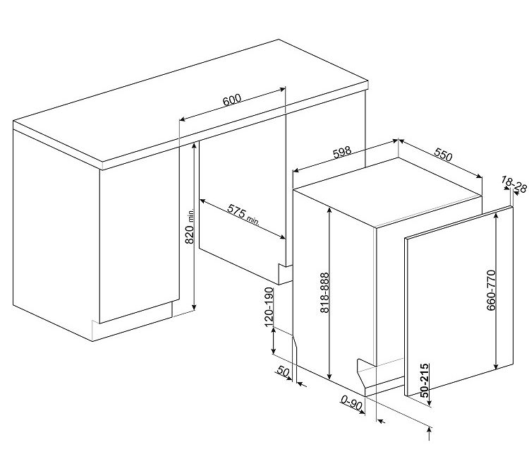- Максимальный размер посуды, загружаемой в верхнюю корзину: 19.0 см