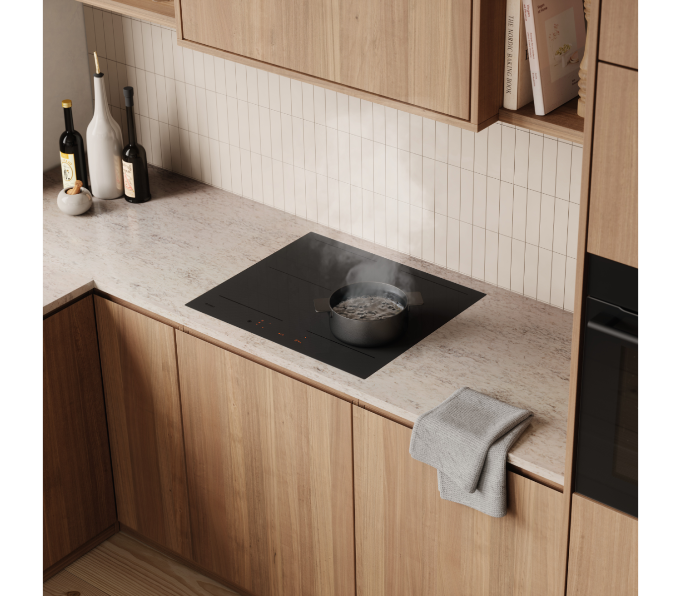 Модель оснащена функцией Hob-to-Hood, которая позволяет управлять вытяжкой прямо с панели. Также в панели есть возможность управления через Wi-Fi, что обеспечивает максимальное удобство и контроль. Экран дисплея показывает все необходимые параметры во время приготовления пищи, включая температуру и время.