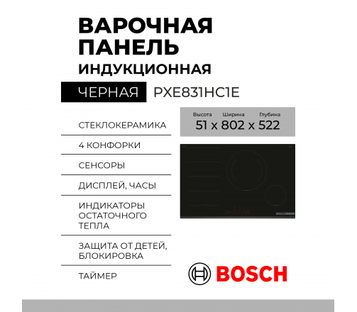 Индукционная варочная панель Bosch PXE831HC1E
