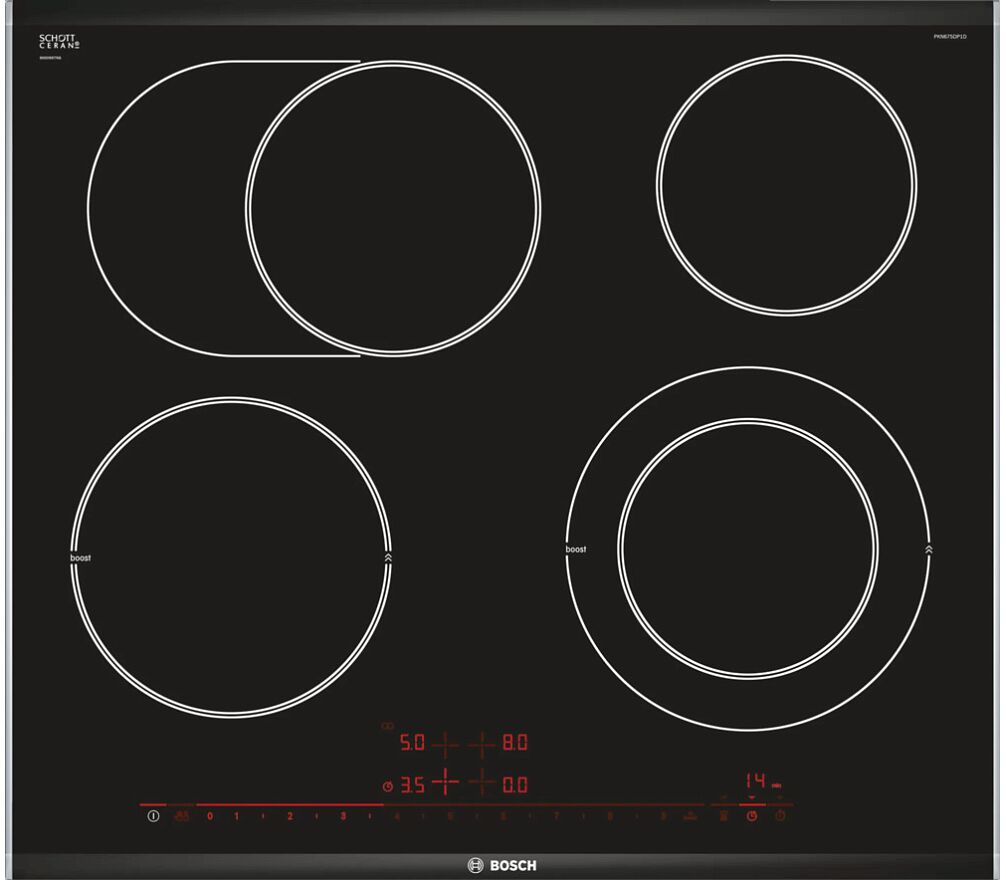 Варочная панель Bosch PKN675DP1D имеет 2 зоны расширения для разных типов посуды. Функция блокировка от детей убережет от случайного нажатия. Устройство оснащено 17 ступеней мощности для точного регулирования температуры.
