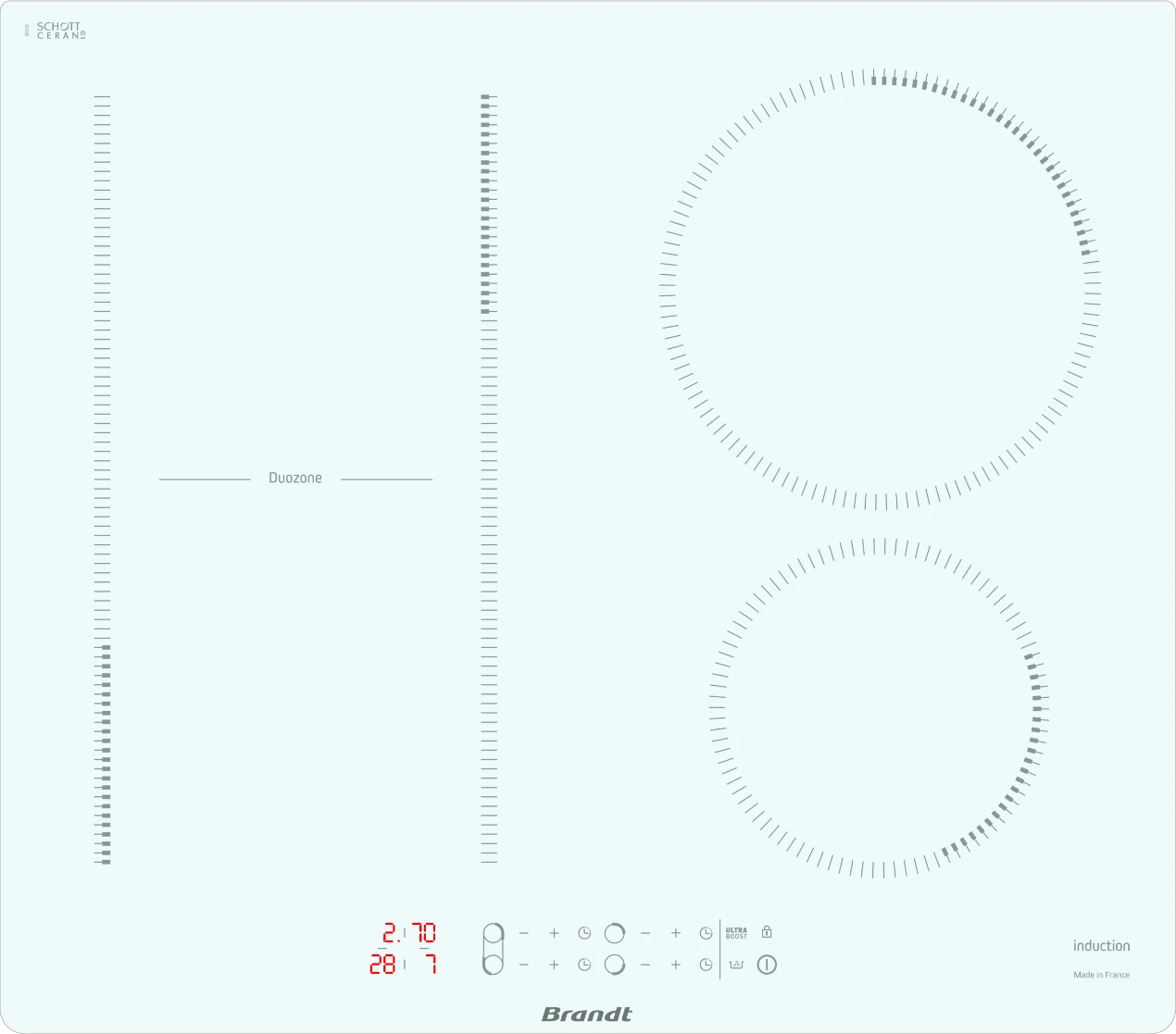 Гибкую зону DuoZone можно разделить на две автономные зоны приготовления, и Вы сможете готовить на передней или задней части варочной панели или на обеих одновременно, установив для каждой зоны необходимый уровень мощности.