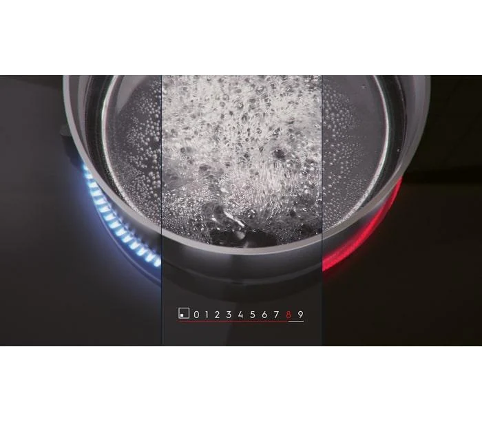 Модель оснащена удобной панелью управления, расположенной спереди справа. Техника имеет сенсорные переключатели и подсветку, а также таймер с отсчетом времени и звуковым сигналом. Также предусмотрена трехступенчатая индикация остаточного тепла, блокировка управления и автоматическое отключение для обеспечения безопасности.